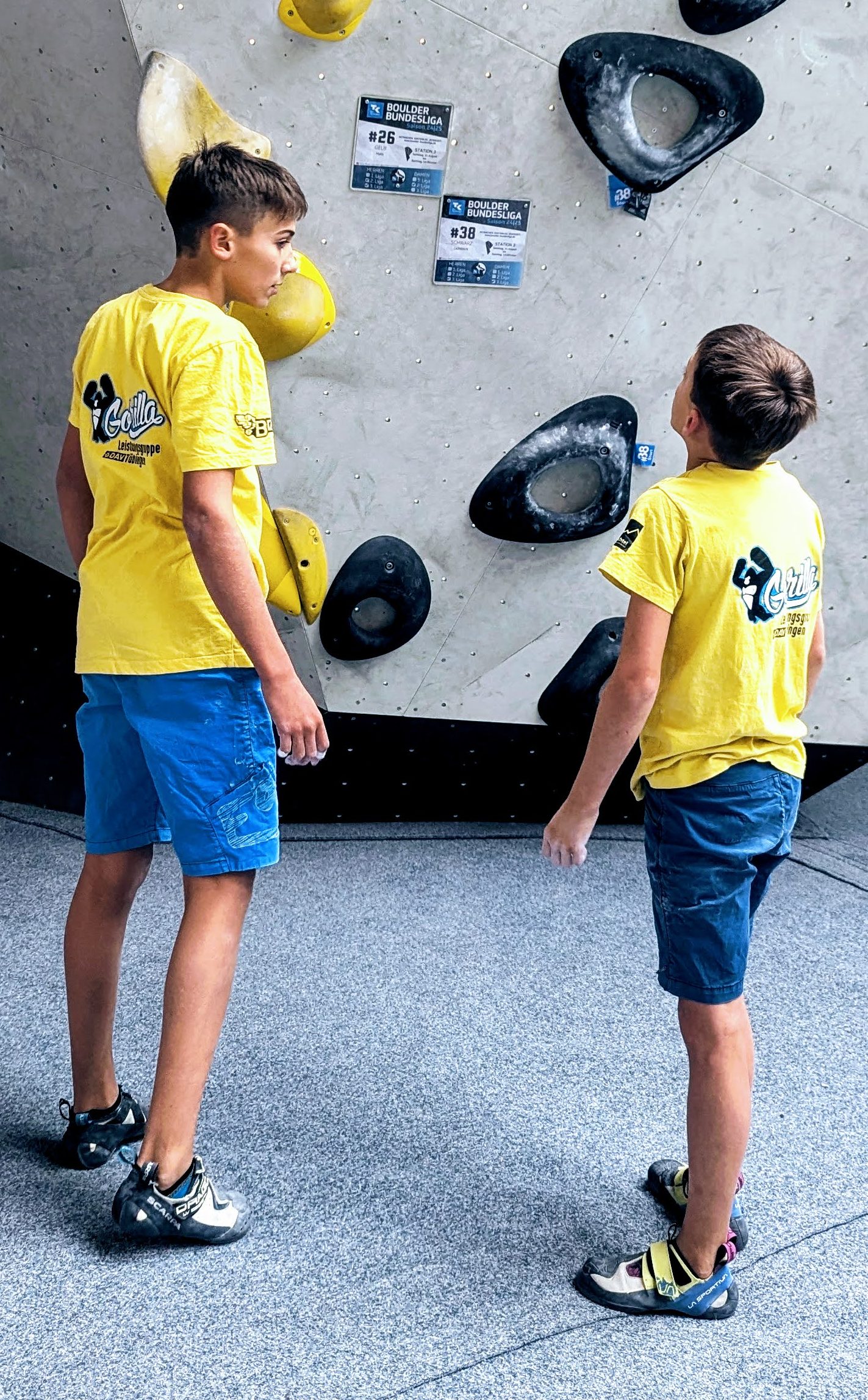 Die Jungs haben sich für ihre klasse Boulderei noch ein cooles Prisma-Shirt verdient – ein Andenken diese brillante Boulderhalle. 😉