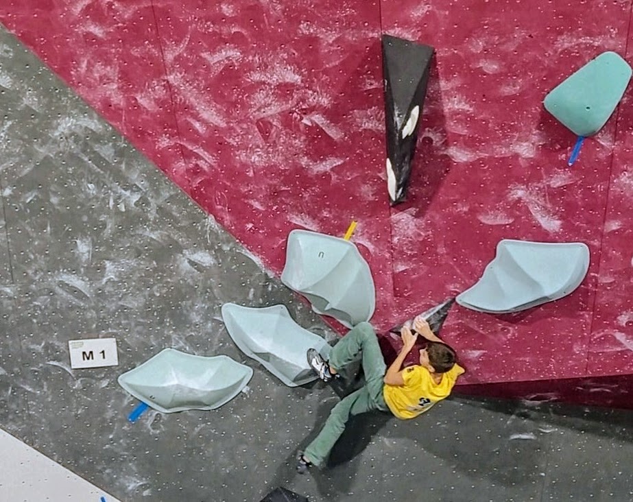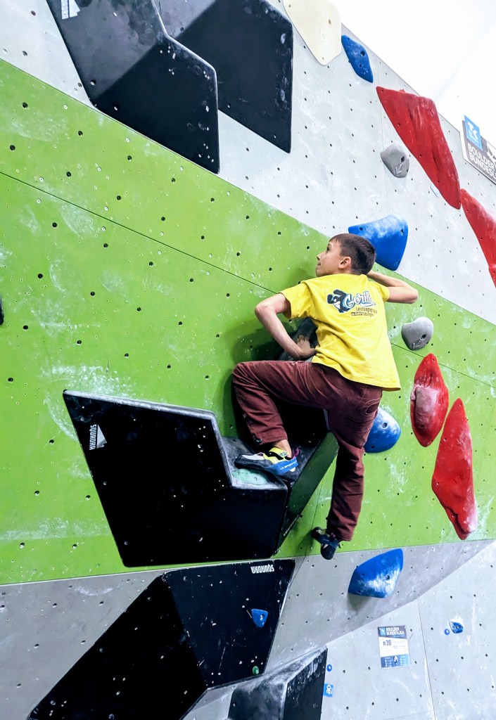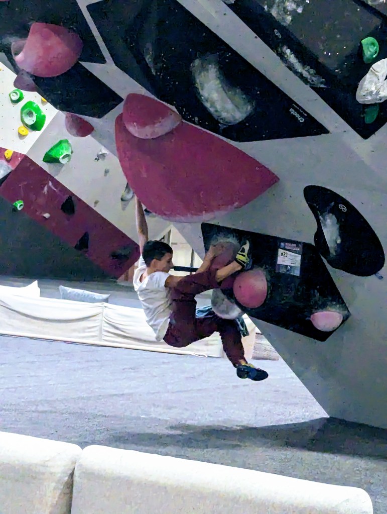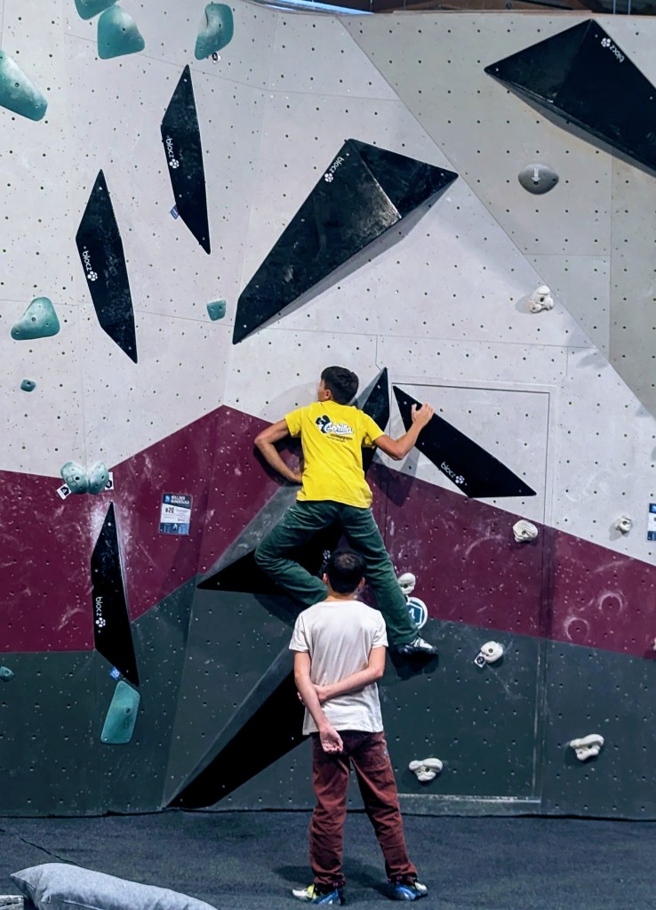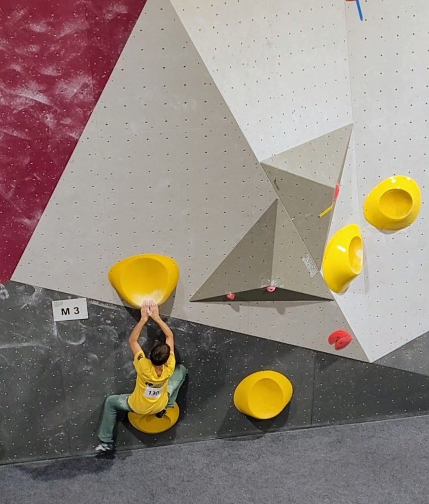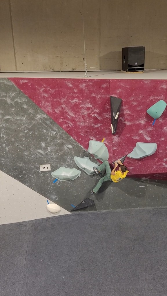 Der nächste Bouldertag hatte diesmal nichts mit der Boulder Bundesliga zu tun. Trotzdem fanden wir uns am Samstagmorgen wieder im Osnabloc ein, denn Niels nahm an der Offenen Norddeutschen Landesmeisterschaft Bouldern des DAV Nord teil (Mats war für eine Teilnahme zu jung). An der beeindruckenden Wettkampfwand des Osnablocs waren erstklassige Qualiboulder geschraubt. Die Atmosphäre beim Wettkampf war sportlich, aber angenehm; die Organisation super! Niels hatte eine gute Qualirunde, sodass er den Einzug ins Finale schaffte. Vor dem Finale ging es für die jungen Athleten sogar in die Isolationszone. Im Finale probierte Niels sich an hammerschweren Boulderproblemen. Gerne wären für ihn mehr Tops drin gewesen, aber die Stimmung in der Halle sowie die tolle Kommentation von Yannik Meyer, sorgten für sehr viel Spaß und eine tolle Wettkampferfahrung.